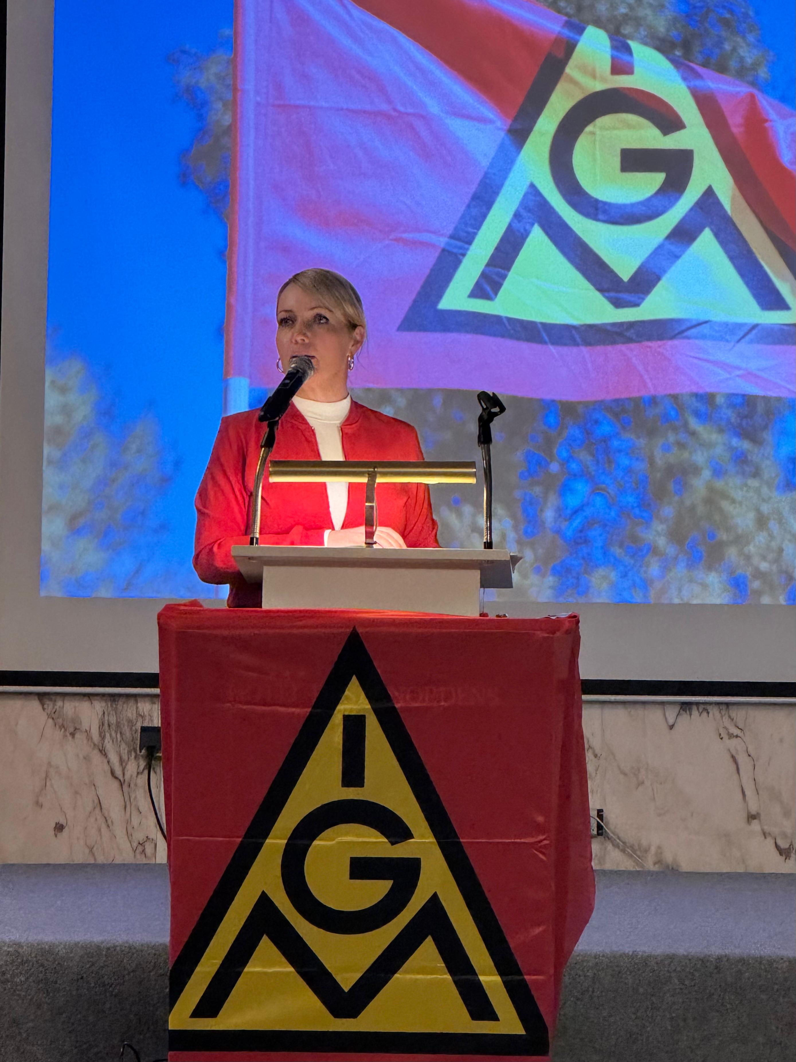 Laura Pooth, Bezirksvorsitzende DGB Nord spricht zu den Jubilaren.